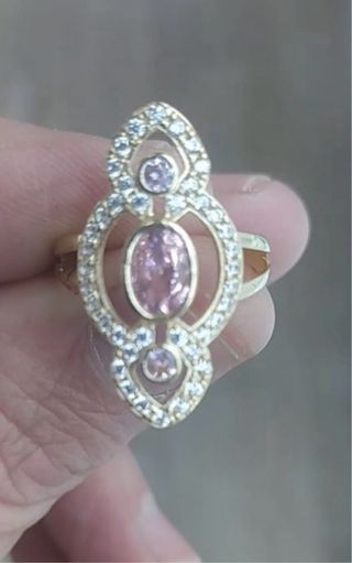 Anillo Oro 18k con Piedra Rosa y Circonitas