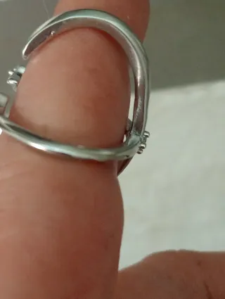 Anillo de la marca Pandora con diseño de trébol de cuatro hojas. Es un accesorio elegante y ajustable. - Diseño de trébol de cuatro hojas. - Detalles con pequeñas piedras brillantes. -Talla 52, viene pequeña. -Un unico uso.