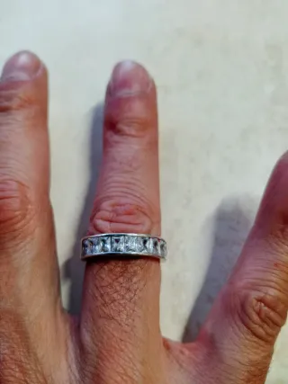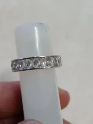 Elegante anillo de plata con incrustaciones de piedras. - Diseño moderno y brillante. - Material: Plata.