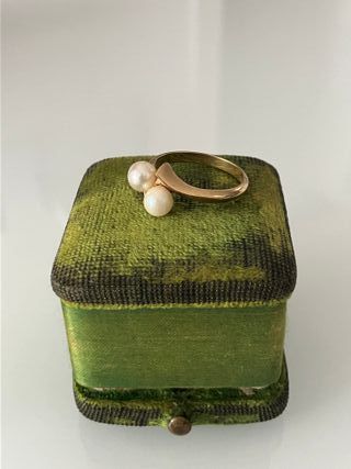Elegante anillo estilo Tú y Yo con dos perlas. - Fabricado en oro de 9 quilates. Medidas, número anillo 12,5 - Dos perlas engastadas.