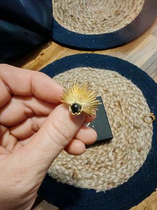 Precioso anillo de estilo boho chic,plata bañada en oro - Diseño de rayos de sol en dorado. - Adornado con una elegante piedra negra en el centro. - Ideal para añadir un toque especial a cualquier look. Hecho a mano Una empresa polaca Iluzja jewlry
