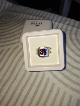 Anillo de la marca Lotus con un diseño elegante. - Montura de plata. - Detalle de piedras en tono rosa.