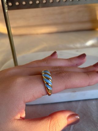 Anillo con un diseño de espiral en tonos dorados y azules. - Diseño en espiral. - Acabado esmaltado.