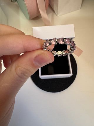 Elegante anillo Pandora con diseño de corazón. La pieza central está adornada con circonitas brillantes, rodeada por una banda delicada. - Diseño de corazón con circonitas. - Banda con detalles brillantes. La caja está desgastada pero el anillo es nuevo. Talla 12