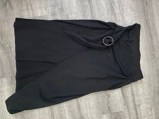 Falda elegante de color negro con un diseño moderno. - Detalle de anilla metálica. - Tejido suave y fluido. - Diseño cruzado.