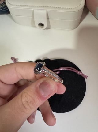 Anillo de la marca Pandora. - Diseño elegante. - Color blanco y negro.