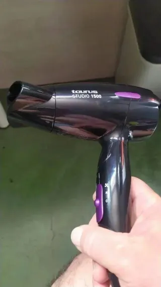 Secador - Taurus Studio 1500, 1500W, 2 Velocidades y Temperaturas, Filtro extraíble, Anillo colgador, Plegable, CABLE EXTRALARGO, COSTÓ 39 EUROS, AHORA LO VENDO POR 15 EUROS, VALE PARA VIAJE, PLEGABLE OCUPA POQUÍSIMO ESPACIO, NO REGATEOS, PERSONAS SERIAS, MUY NUEVO, PRECIO FINAL.Secador de pelo compacto y ligero, perfecto para llevar de viaje. Su diseño en negro brillante con detalles en morado le da un toque moderno. - Modelo: Studio 1500 - Mango plegable para un fácil almacenamiento. - Dos ajustes de velocidad y temperatura.