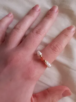 Anillo a 10€la unidad de plata con perla blanca.