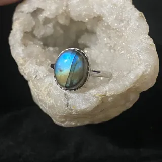Anillo con una gema de labradorita natural engastada en plata. Labradorita natural 9×11mm 💍🪞Material: Plata925. 🌈El tamaño del anillo es ajustable. 💝 #natural #anillo #silver #tamañoajustable #labradorite #anilloplata925 #plata #labradorita