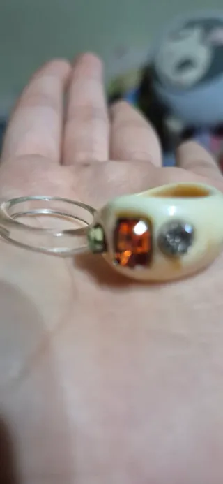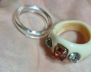 Anillos con un diseños únicos y detalles brillantes. -Anillo1: Transparente (Precio solo: 1€) -Anillo 2: Banda principal en tono beige con tres piedritas (Precio solo: 2,50) *Tallas: S/M, es mas talla M (ambos anillos)