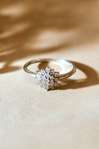 Anillo con un diseño llamativo y adornado con piedras sintéticas. - Diseño con múltiples piedras. - Montura plateada.
