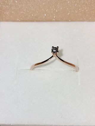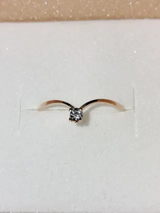 Elegante anillo de oro de 18 quilates con un brillante central engarzado en oro blanco. - Diseño en forma de V. - Piedra central engastada.