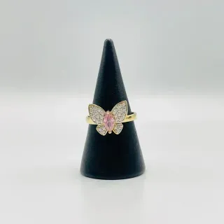 ANILLO MARIPOSA PEQUEÑA ROSA. Oro 18k. Peso: 2,87gr, Talla: 13, Piedras: Circón. Tenemos tienda física en Madrid, Ciudad Real, Alicante, Elche, Murcia y Granada. Ref.(1714). NOTA: Disponible a juego colgante Ref.(1716) y pendientes Ref.(1715). Puedes ver mas joyas en nuestro perfil. No hacemos envíos.