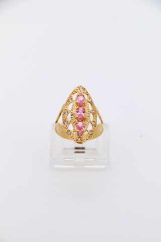 LANZADERA MINI 3 PIEDRAS ROSAS. Oro 18k. Peso: 3,25gr, Largo: 2,2cm, Ancho: 13mm. Talla:12. Piedras: Circonitas. Joyería nueva, tenemos tienda física en Ciudad Real, Madrid, Alicante, Elche, Valencia, Murcia y Granada. Ref.(2747). NOTA: Puedes ver mas joyería en nuestro perfil. No hacemos envíos.