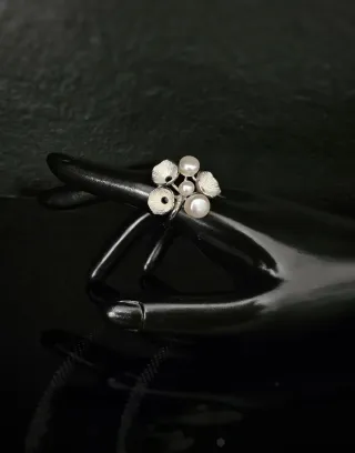 Elegantes anillos Italianos con perlas, Onyx/cristal swarosvsky en pavé y detalles plateados. - Diseño floral con varias perlas. - Acabado metálico texturizado.