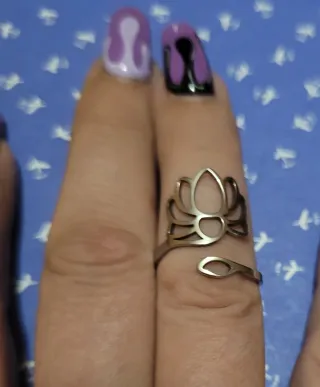 Anillo con un diseño delicado y ajustable. -acero inoxidable hipoalergénico - Elaborado en metal plateado. - Presenta un motivo de flor de loto