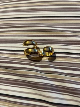 Anillo color dorado de acero inoxidable con brillos y forma de hojas. Mide 16mm de diámetro interior. Nuevo, sin usar, lo compre pero nunca lo usé, no es mi estilo. Precioso y cómodo.