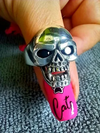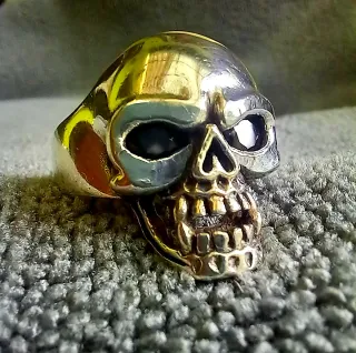 ⚠️¡ TALLA 26 !⚠️ OFERTA. ( PRECIO ORIGINAL 75€ ) Impactante anillo de plata de ley 925 con diseño de calavera tridimensional, de gran presencia y excelente definición. Los ojos están engastados con zafiros, que aportan un brillo profundo y un fuerte contraste junto al pulido de la plata. Plata 925 maciza. Zafiros azules tallados naturales en los ojos. Cabeza de gran tamaño: 2,3 × 1,7 cm. Peso: 12,7 gr. Talla: 26. Muy llamativo gracias a su diseño y tamaño! En muy buen estado.