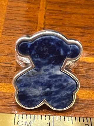 Anillo de la marca Tous con un diseño de oso y una piedra azul. La talla está puesta a boleo, lo que importa es la foto en la que se ve la regla y la medida. En la orejita de la derecha tiene una pequeña rajita. Casi no se nota. - Piedra azul. - Detalles en plata.