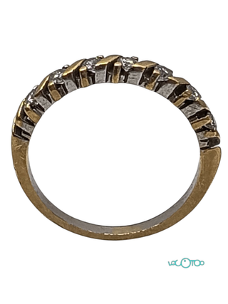 Anillo de Oro de 18 quilates adornado con 10 piedras en hilera y de talla 13 que corresponde generalmente a un diámetro interior de 16,8-16,9mm y una circunferencia o contorno de dedo de unos 53-53,1mm. Peso 2,30 Gramos. E0394372GA.