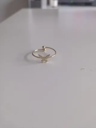 Elegante anillo con diseño de mariposa. - Acabado dorado. - Talla ajustable para mayor comodidad.