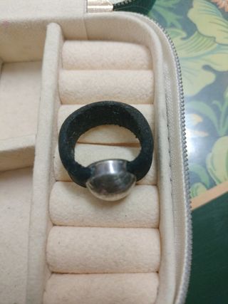 Anillo en Plata contrastada con Azabache medidas en fotos