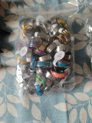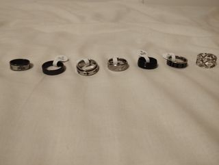 Lote de anillos de acero inoxidable en varias tallas. - Tallas disponibles: 17, 18, 19, 20 y 21. - Diseños variados y modernos. Todo el lote 200 unidades más o menos 100€, o por separado según la cantidad desde 1€/unidad