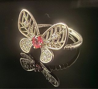 Anillo con un bonito diseño de mariposa. - Diseño de mariposa con alas verdes y detalles rosas. - Talla ajustable para mayor comodidad.