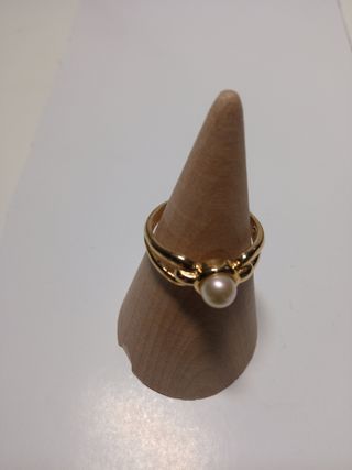 Elegante anillo de plata dorada y una perla central. - Diseño delicado y atemporal. - Acabado dorado brillante. - Perla de tono blanco nacarado. - ajustable
