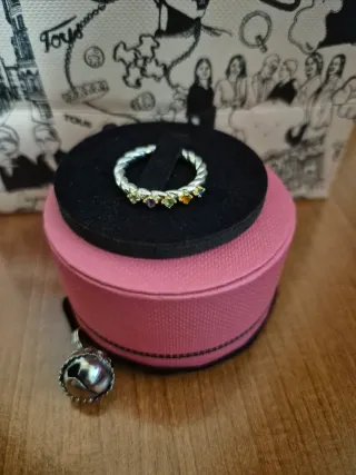 Anillo de la marca Singularu con bolsa y todo para regalo en color rosa. d - Diseño elegante. - Ideal para complementar cualquier atuendo. -Color oro con diseños de colores talla 12 es 16,24-16,87mm