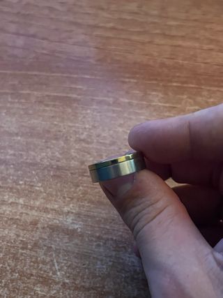 Anillo de acero con cenefa en negro. 0,8 Cm de ancho y 1,8 Cm de diámetro. MIRA MIS ANUNCIOS, hay más cosas de interés y aprovecha los gastos de envío.