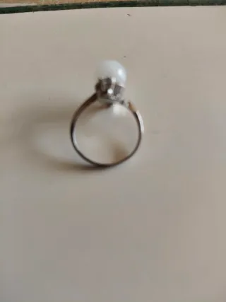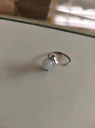 Anillo de bisutería, no de plata, con piedra blanca grande, tipo piedra lunar