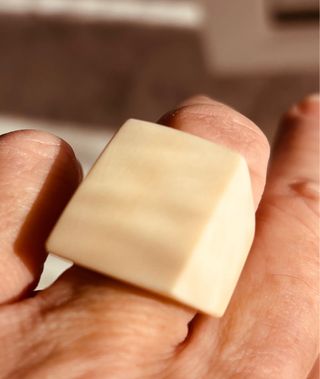 Anillo de gran tamaño con un diseño llamativo. De resina o lucite que simula el marfil o hueso. Diámetro interior 19 cm - Material de aspecto marfil. - Tono beige suave.