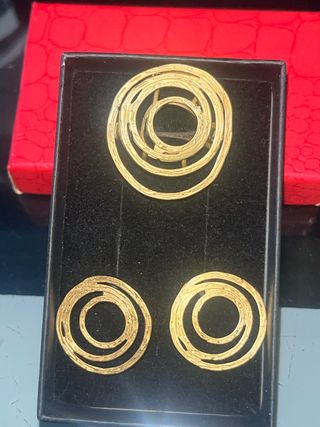 Elegante conjunto de bisutería compuesto por un anillo y un par de pendientes. Medida del anillo es regulable. - Diseño moderno con círculos entrelazados. ideal de regalo. - cajita opcional * 1€