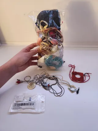 Conjunto de accesorios de joyería. - Incluye collares, pulseras y un anillo. - Presenta detalles en tonos plateados y rojos. Muchas de ellas tienen plata y alguna hasta oro pero poco.