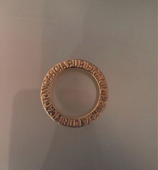 Elegante anillo de la marca Purificación García. - Diseño circular con inscripciones. - Acabado en tono dorado.Tiene un golpecito marcado en la foto