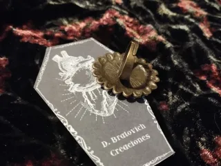 Talla: de perímetro mide 53,38mm lo que corresponde a una talla 13. Piedra: Cuarzo Rosa. Material: Plata de Ley 925 bañado en oro de 22 quilates con 3 micras de espesor. Alto delantero: 20 mm Alto trasero: 3,9 mm Grosor delantero: 8,6 mm Grosor trasero: 1,1 mm Alto piedra: 13,6 mm Ancho piedra: 9,7 mm Tiene sello de plata pero no el de San Saru al ser antiguo. Tiene un pequeño desperfecto en la parte lateral derecha como una hendidura apenas perceptibles, tal y como se muestra en las fotos. Pvp. actual en plata: 69€ 📦 Envío o entrega en mano en Barcelona y alrededores.