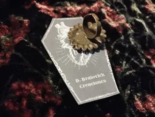 Modelo Gar Alto: 4,5 mm Grosor: 1,5 mm Material: Plata de Ley 925 bañada en oro de 24k con 2 micras de espesor. Talla 10,5 (16,1mm) Pvp. 45€ Debido a la tinta china de debajo tiene las hendiduras de las margaritas un poco oscurecidas. Es tal y como se muestra en las fotos.