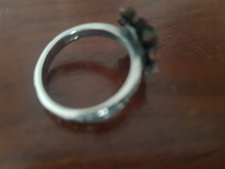 Anillo Plata efecto Vintage y con un diseño único de tela de araña, adornado con pequeñas piedras de colores - Diseño detallado de tela de araña. - Incorpora piedras de color morado y detalles anaranjados. - Talla ajustable para mayor comodidad. Nuevo sin estrenar