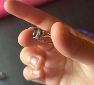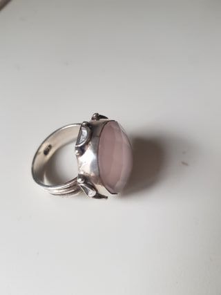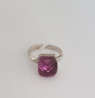 Anillo de plata con una piedra rosa/violeta - Diseño ajustable para mayor comodidad. - Montura de plata.