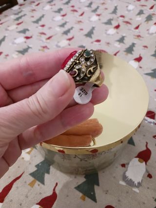 💍 Anillo de bisutería llamativo y brillante ✨ Elaborado con cuentas y abalorios, lleno de detalle 🔷 Diseño ovalado central en tonos azules y dorados, elegante y original 💎 Banda decorada con pequeñas cuentas, cuidando cada acabado 💙 Ideal para dar color y personalidad a cualquier look 🔥 Pieza única, no lo dejes escapar 📩 Escríbeme para más info
