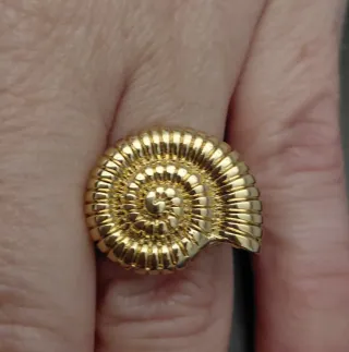 Anillo con diseño de ammonite, bañado en oro de 18 quilates. - Material: Acero. - Acabado: Baño de oro 18k.