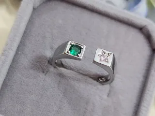 Elegante anillo de plata con diseño abierto y ajustable. Presenta un cristal verde en un extremo y un cristal rosa con forma de estrella en el otro. - Material: Plata - Diseño: Abierto y ajustable - Decoración: Cristal verde y cristal rosa con forma de estrella Nuevo