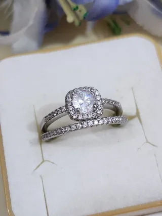 Set de dos anillos estilo compromiso con incrustaciones de cristales. - Diseño elegante y brillante. - Fabricados en plata.