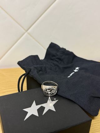 Anillo de TheGreatFrog en colaboracion con Iron Maiden, modelo Powerslave. No estoy muy seguro de la talla , si de verdad te interesa lo mido.