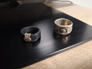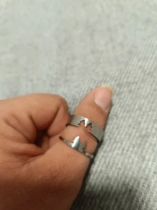 Anillo de acero con un diseño de dos siluetas de arboles. Nuevo a estrenar, de acero.