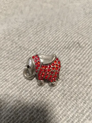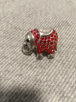 Este anillo tiene un diseño de elefante adornado con brillantes piedras rojas. Ajustable. Está nuevo, sin usar.