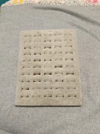 Expositor de terciopelo beige para organizar tus anillos o exponer en tienda. - Capacidad para 50 anillos. - Diseño elegante y funcional. - Acolchado.