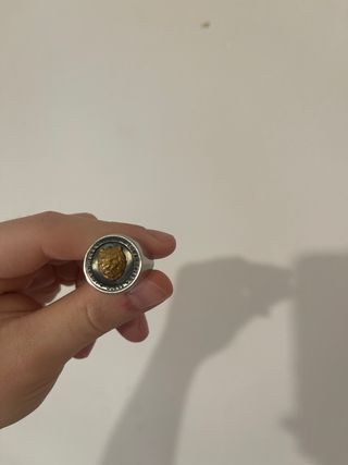 Anillo con un diseño distintivo que combina detalles dorados y plateados. - El centro del anillo presenta un león en relieve. - El aro del anillo tiene un acabado plateado.