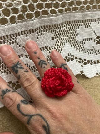 Anillo Rosa Crochet Hecho a Mano